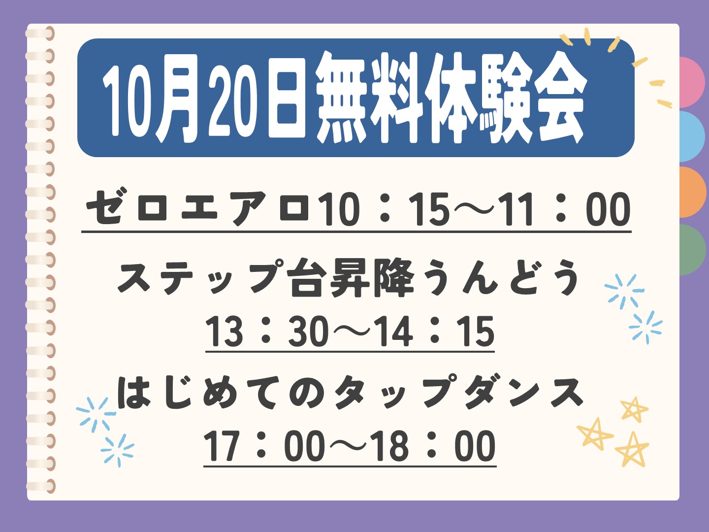 令和7年度 第3期教室の無料体験会・フロア教室お申込みにつきましては